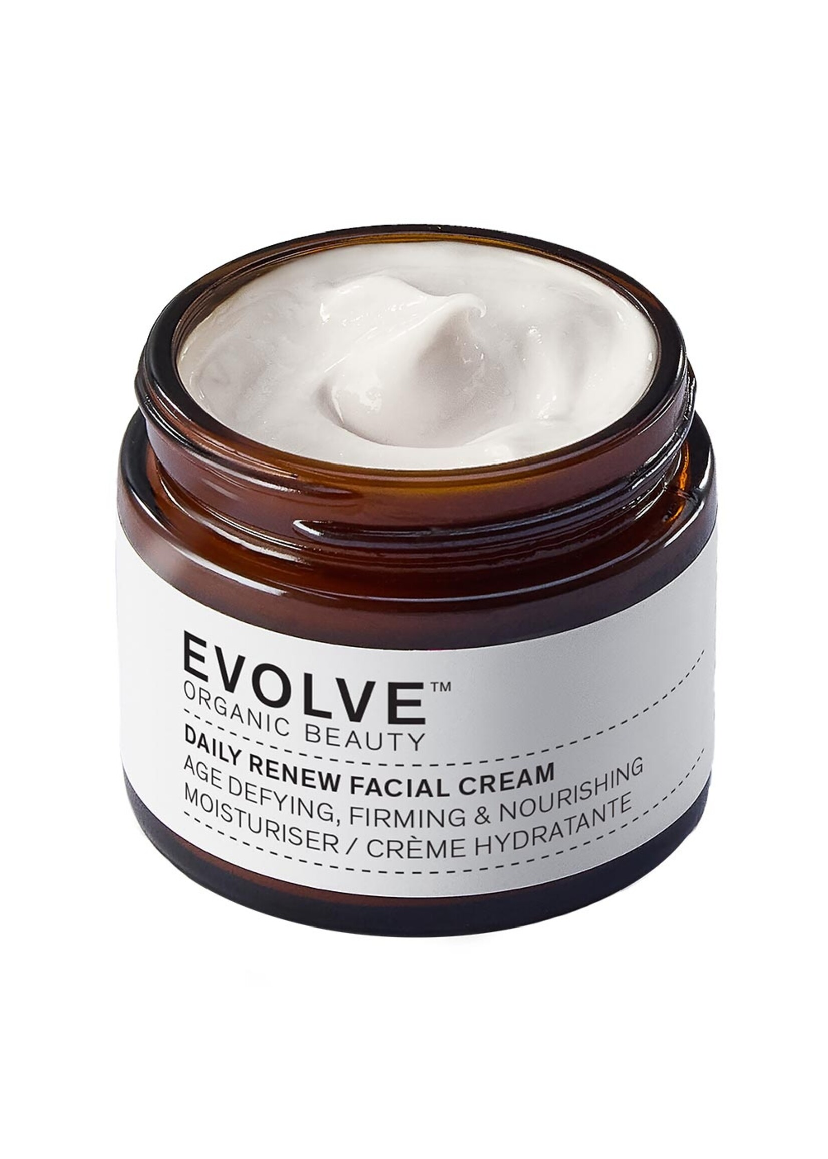 Deze natuurlijke anti-aging daily renew cream gezichtscrème hydrateert, kalmeert en herstelt de normale tot droge huid met een verzorgende melange van biologische arganolie en hyaluronzuur.